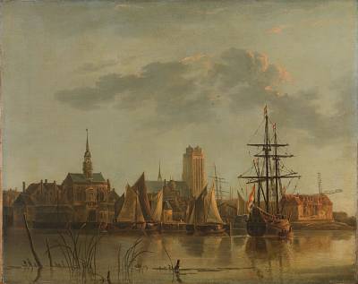 Aelbert Cuyp schilderde zijn geboortestad graag en veelvuldig. Zijn naam wordt geëerd in Dordrecht met een kunstwerk van Maria Roosen; abstract, omdat niet bekend is hoe hij eruit zag. Zijn werk was en is zeer geliefd in Engeland. Hier een kopie naar de linkerhelft van een groot schilderij dat tegenwoordig in Ascott House in Engeland hangt.